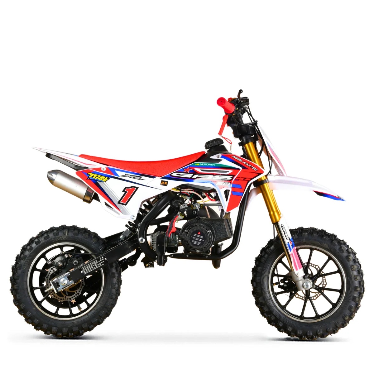 - El Rebel Master Mini Cross es una motocicleta de alto rendimiento diseñada para pilotos juniors y amateurs. Equipada con un motor de 49cc, 2 tiempos, que combina potencia eficiente y baja emisión de gases, ideal para competencias y uso recreativo.