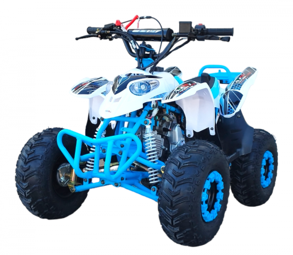 - El quad Polar R7 para adultos tiene un peso de 65 kg, soportando una carga máxima de 120kg, gracias a su chasis de acero reforzado. Su sistema de aceleración es como los quad para adultos y profesionales utilizando el sistema de gatillo.